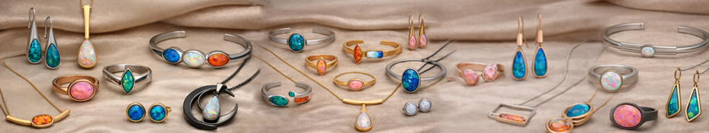 Most synthetic opal jewellery uses stainless steel, sterling silver, or gold-plated metals for durability and comfort.