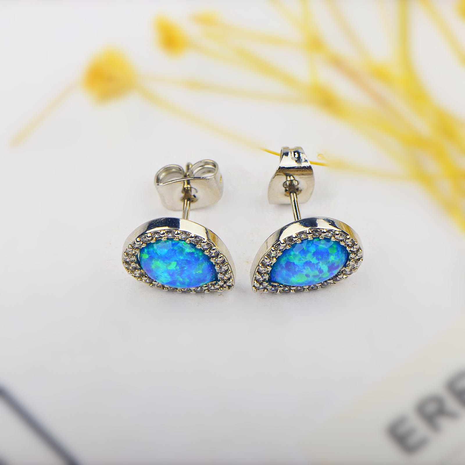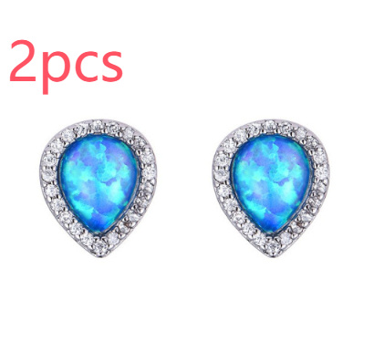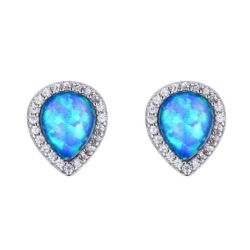 Women’s Simple Drop Shape Blue Opal Stud Earrings